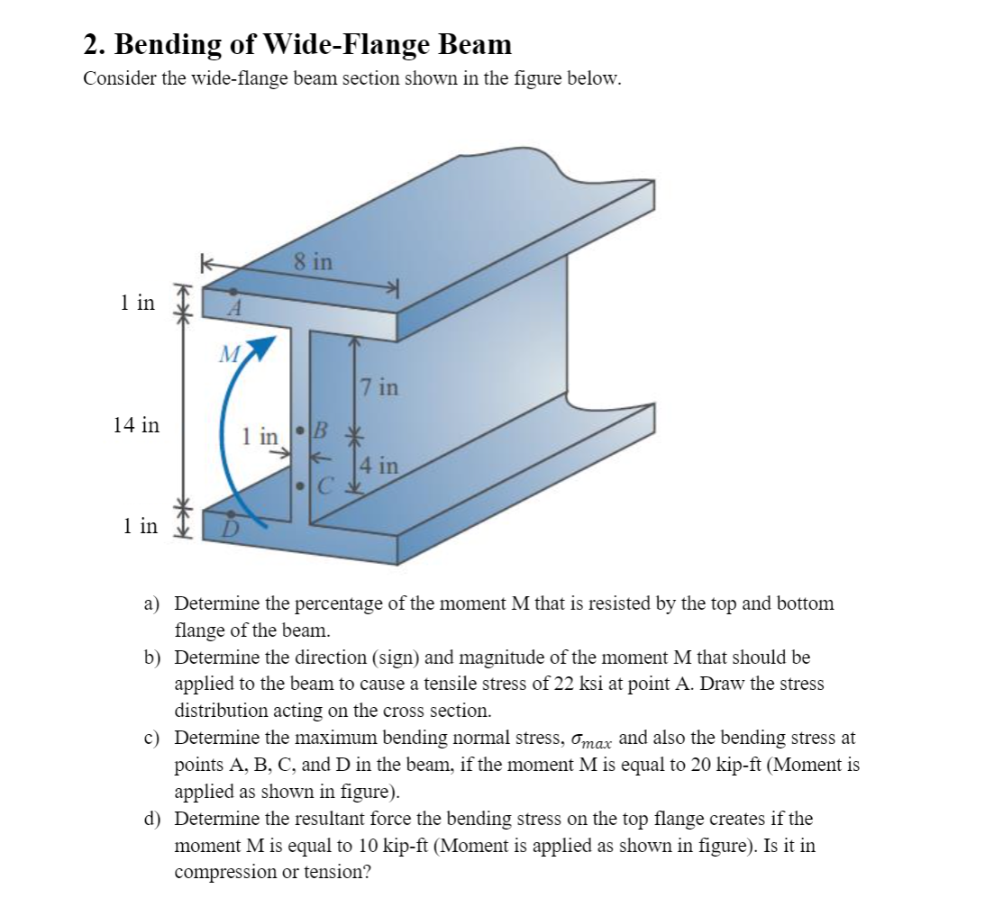 Solved 2. Bending of WideFlange Beam Consider the What Is The Flange Of A Beam When looking at the profile of a steel beam, it looks like an i. The (typically shorter) horizontal pieces on the top and bottom are called the. 84 rows the standard method for specifying the dimensions of a american wide flange beam is for example w 310 x 250 x 79, which is 310 mm deep,. 177 rows. What Is The Flange Of A Beam.